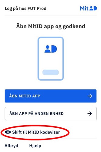 Hvis borger både har MitID app og kodeviser kan der skiftes til kodeviser ved at trykke her: