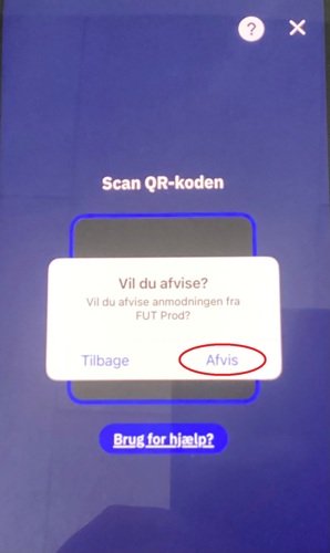 På borgers eget device skal der i MitID appen vælges "Afvis" hvis den står klar til at scanne QR-koden