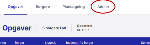 I får automatisk adgang til at oprette og tildele materialer fra 11/3-26, hvor der vil komme en ny fane øverst i Telma. Den nye fane hedder ’admin’ og ser sådan her ud: